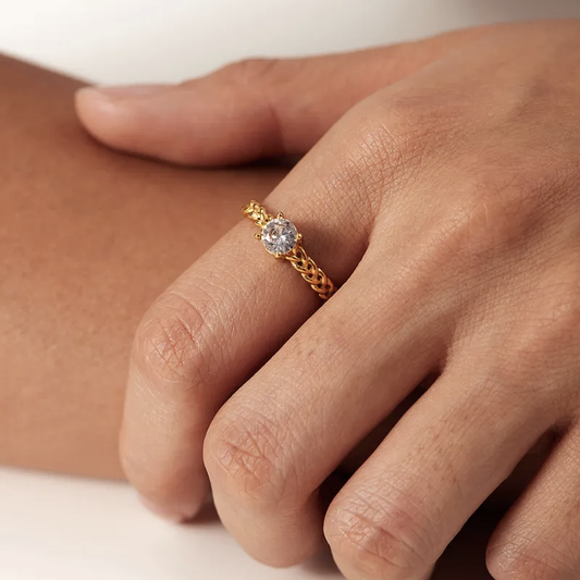 Bague Tressée avec Pierre – Élégance raffinée & éclat subtil