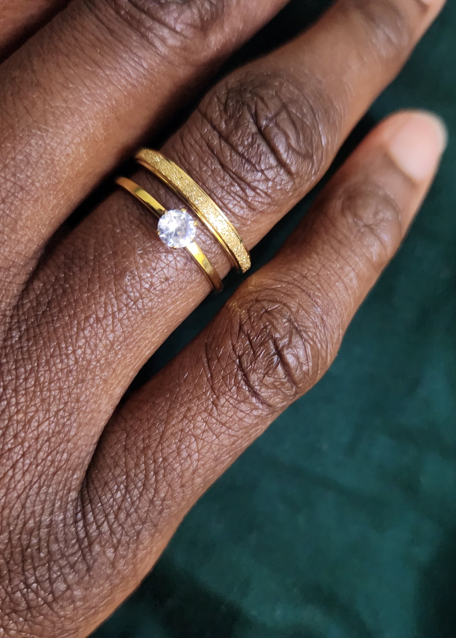 Notre bague anneau avec strass se combine très bien avec notre bague couleur or avec zircon. Cette combinaison ira avec tous les styles de tenue du classe et chic au plus décontracté.